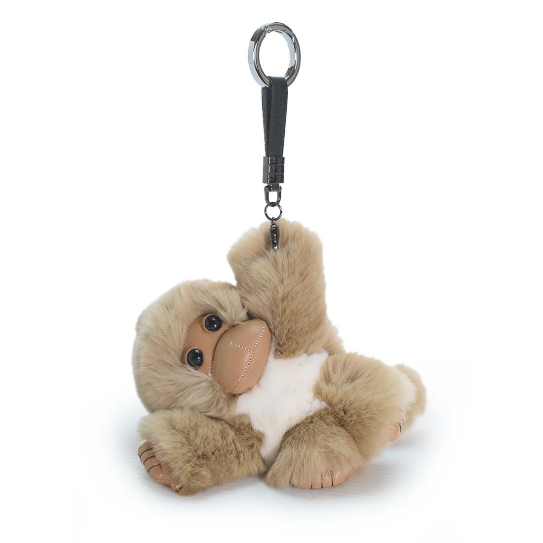 柔らかなラビットファーを使用したアニマルチャーム。 つぶらな瞳がキュートなお猿さんです。片手側にカラビナが付いているので、 まるでカバンにぶら下がっているようなフォルムになり、愛くるしい魅力を放ちます。