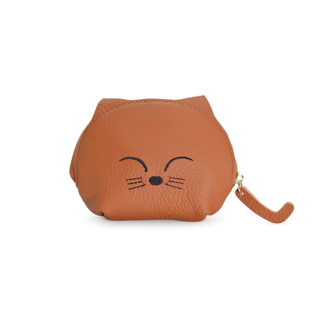牛革の温かみを感じる猫モチーフの便利なポーチ。