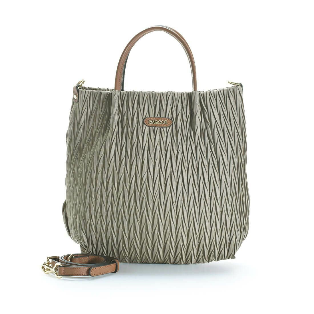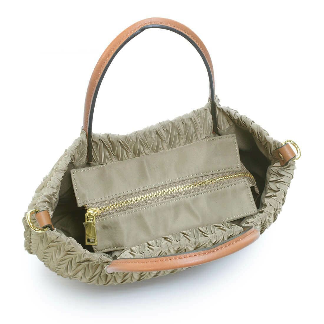 程よい光沢のあるプリーツ加工のナイロンバッグ。