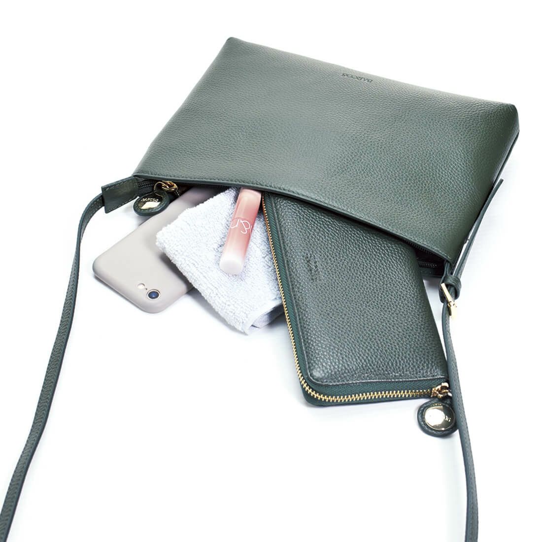 長財布の他に、スマホや手帳、ハンカチなどしまっていただける大きさです。