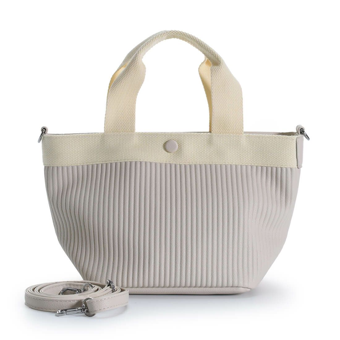 シンプルなデザインのフェイクレザートートバッグ。 リブニット風のストライプ模様がおしゃれな雰囲気を醸し出しています。 ショルダーベルト付きなので、ハンドバッグとしても、ショルダーバッグとしても使用可能です。