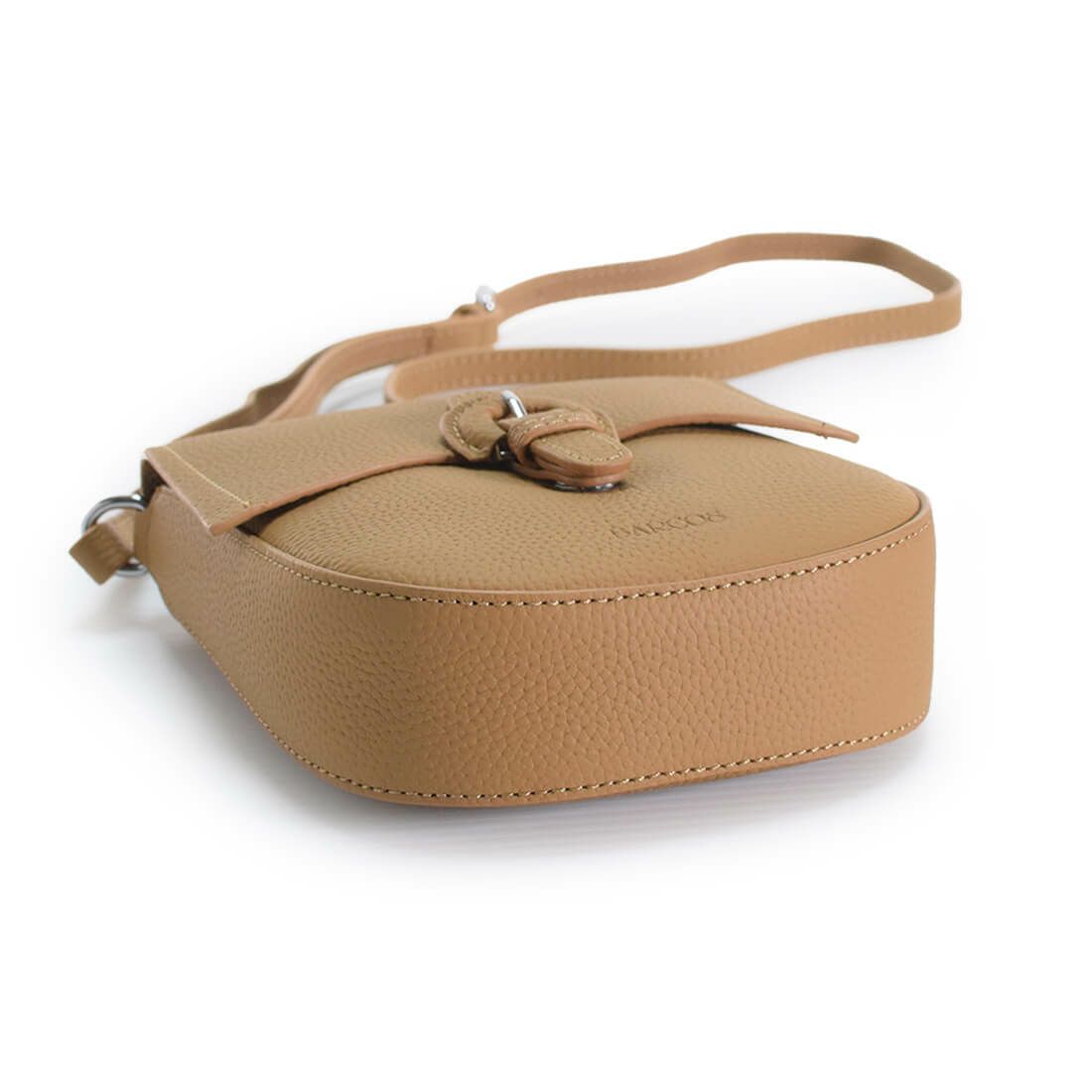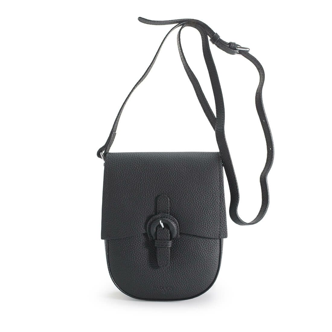 シュリンクレザーを使用したポシェット。 かぶせポケットのベルトデザイン部分はマグネット式の開閉口になっているので開け閉めが楽です。 スマホやミニ財布、リップなど必要な小物をこれ一つで持ち運びできます。