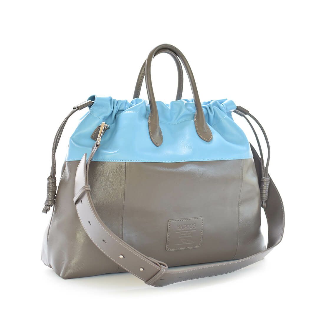 パステルカラーと深みのあるブラウンの組み合わせが、モードな雰囲気を醸すおしゃれな配色バッグ。 大きなバッグに大胆なバイカラーデザインを施し、コーデの主役になるアイテムに仕上げました。 開閉口は大きく開くマグネットタイプで、荷物の出し入れがしやすい仕様。 内側には2つ内ポケットがついているので、小物の整理も可能です。1泊ほどの旅行もこなせるサイズです。 ショルダーバッグにもなる2way仕様で、旅先のシーンに合わせて、スタイルを使い分けていただけます。