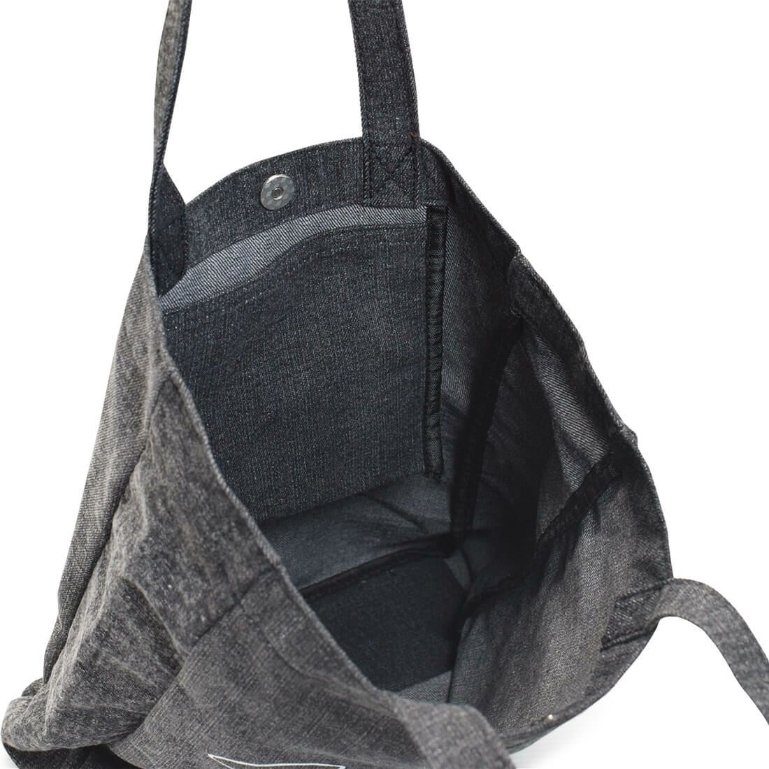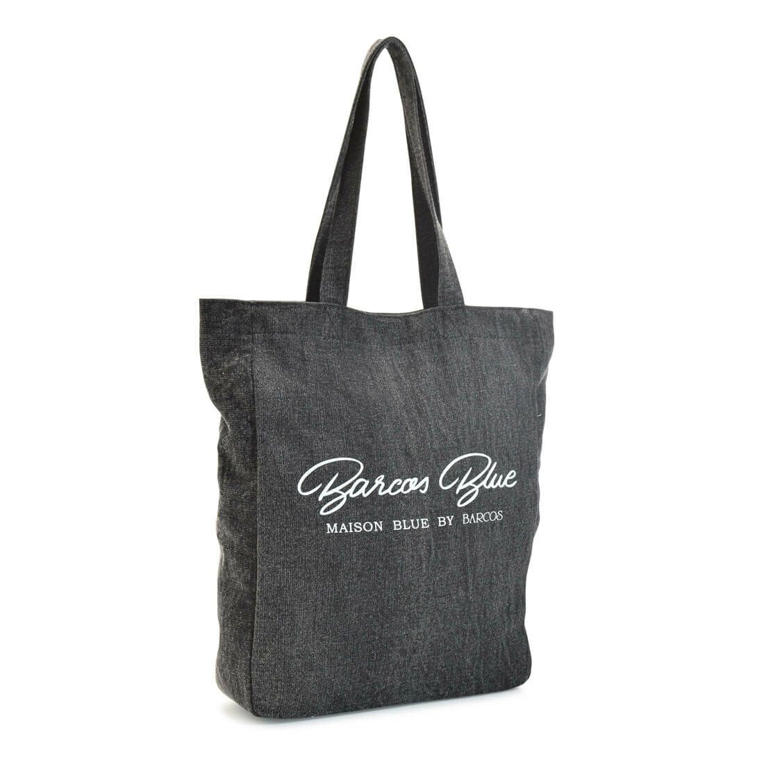 バルコスブルーのロゴをプリントした、シンプルな形のトートバッグ。 デニム調の生地がカジュアルな印象。 開閉口は、荷物がサッと取り出しやすいマグネットボタン式。 大きめの内ポケットが付いているので、底の方に埋もれがちな小物はここへしまうのがベター。 A4サイズもラクラク入る大きさで、かさばる荷物をこれひとつにまとめることができます。 持ち手が長めの設計なので、肩にかけやすく、持ち運ぶときに困ることがありません。